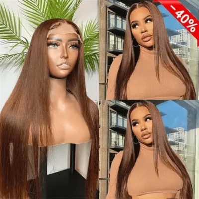 Reddish Brown Straight Glueless Human Hair Lace Front Wigs