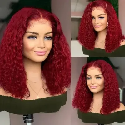 Ombre Dark Red, 99 j Burgadi Color Bob Straight Lace Frontal Wig