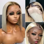 Ombre Blonde Short Cut Bob 613 Natural Hairline Silky Straight Lace Front Wigs For Black Women With Baby Hair