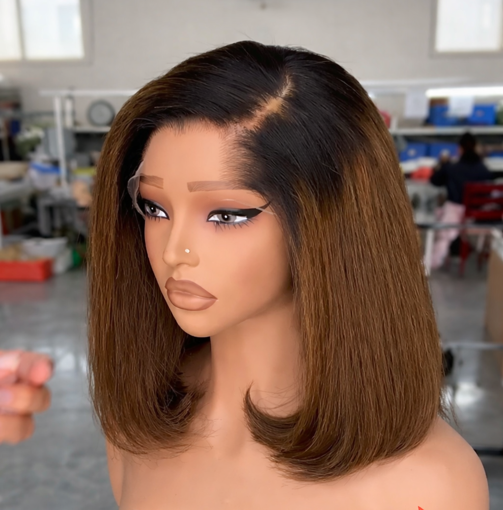 5X 5 HD 180% 10″ 1B/30 Brown Yaki+Afro baby’s hair Lace wig