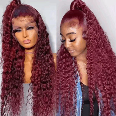 99J Burgundy Water Wave Lace Front Human Hair Wigs