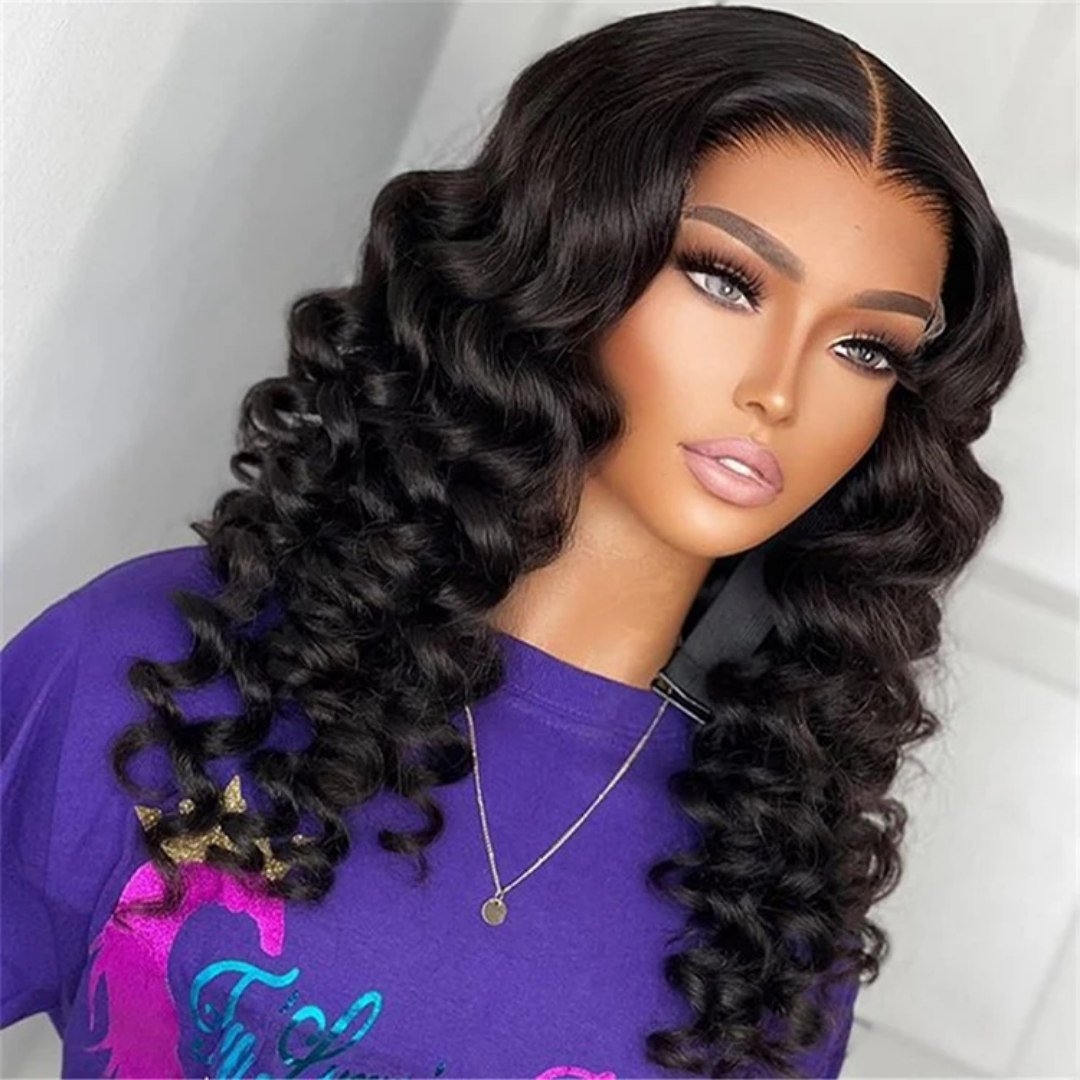 Achieve a soft and glamorous look with this loose wave glueless lace front human hair wig, designed to deliver natural movement and effortless elegance. The loose wave texture creates smooth, flowing waves with a light bounce, perfect for a relaxed yet polished hairstyle.