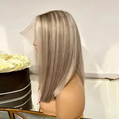 Platinum Short Ash Blonde Glueless Bob 13×4 Lace Human Hair Wig