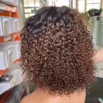 Jerry Curly Ombre Brown Bob Lace Frontal Wig