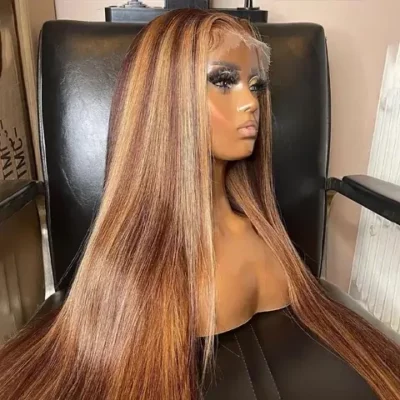 P4/27 Highlight Honey Blonde Colored Straight Lace Frontal Wig