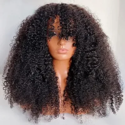 200% Density Kinky Curly Human Hair Wigs Machine Made Wig With Bangs