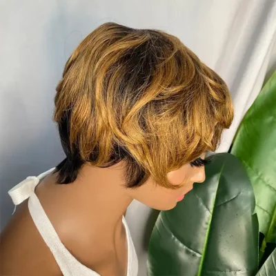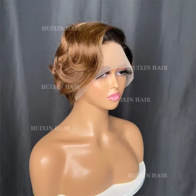 13×1 Ombre Brown Pixie Cut Human Hair Lace Frontal Wigs