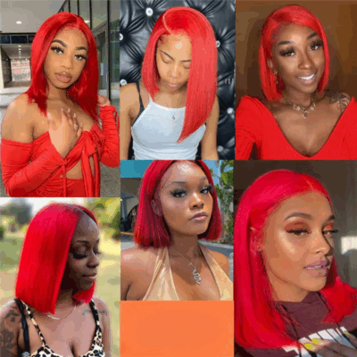 Red Colored Short Bob Wig 180% Density13x4 Lace Front Wigs Straight Human Hair Wigs